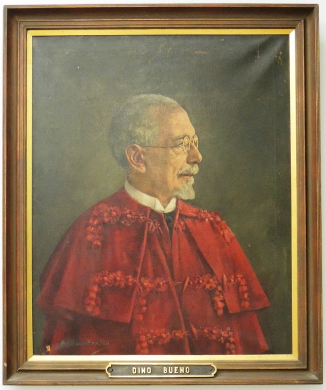 Uma obra maior de base 63 cm x ?? cm, óleo sobre tela, representa Dino Bueno (Pindamonhangaba, 15 de dezembro de 1854 - São Paulo, 27 de fevereiro de 1931). Antônio Dino da Costa Bueno matriculou-se na Faculdade de Direito do Largo de São Francisco e recebeu o grau de bacharel em 1875. Logo em seguida, em 1876, torna-se promotor de justiça em São Paulo. No mesmo ano obtendo o grau de doutor. Iniciou sua carreira docente em 1882. Exerceu, de 1886 a 1887 o cargo de primeiro delegado de policia da cidade de São Paulo. Em 1894 é eleito deputado federal por São Paulo. Em seguida, ocupa o cargo de secretário do interior no governo Campos Salles de São Paulo. É reeleito deputado federal em 1900, ocupando ainda o cargo de diretor do Banco de Credito Real de São Paulo, em 1904. Também em 1904 é eleito senador estadual paulista.