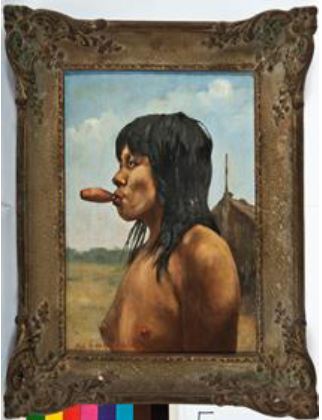 Inscrição no verso: “Índia Carajá Fumando o Cachimbo feito da fruta do Raricocó .Ad-H-v.E”